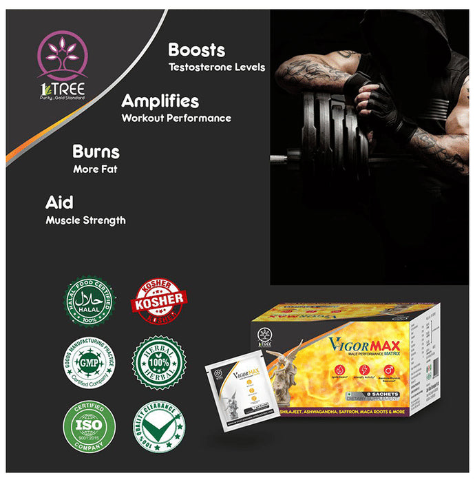 1 Tree Combo Pack of Vigor Max Sachet (8) & Vigor Max Spray (100ml): is a unique formula enriched with ten powerful herbs and minerals fortified with shilajit, gold, saffron and pearl. It helps to give you more intensity and energy for a healthy and happy life.