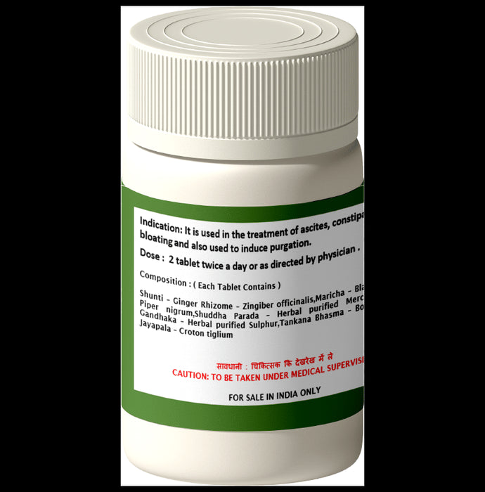 Composition : Shunti,- Ginger rhizome - Zingebr officnals- Marich- Black pepper nigrum, Shuddha parada, Gandhaka- Herbal purified sulphur, Tankana bhasma, Jayapata- corotin tigilum