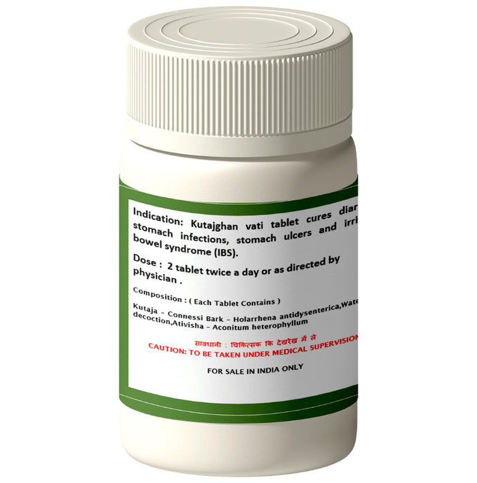 1ratti Kutajghan Vati is an ayurvedic formulation that can prevent dysentery, and diarrhoea, and helps in controlling bleeding. It may also treat irritable bowel syndrome.