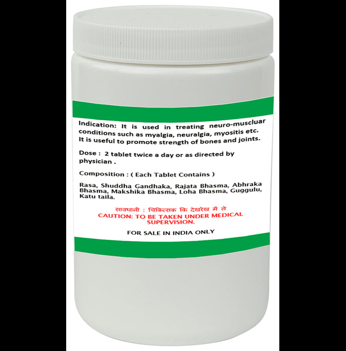 Composition : Shuddha Parad,Shuddha Gandhak,Rajat Bhasma (Chandi Bhasma),Abhrak Bhasma,Swarna Makshik Bhasma,Loha Bhasma (Lauh Bhasma),Shuddha Guggulu,Mustard Oil