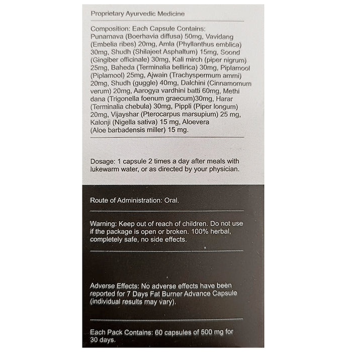 7Days 100% Safe & Natural Fat Burner 500mg Capsule