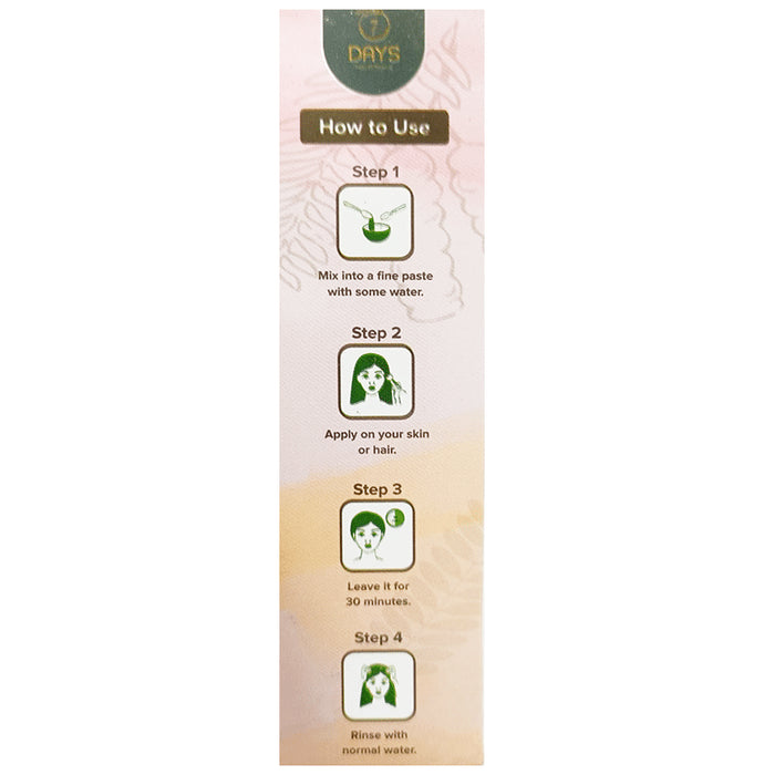 7Days Shikakai PowderIt is a herbal powder formulated with shikakai that promotes healthy and shiny hair. Shikakai is rich in vitamins A, C, E and K and other micronutrients that nourish the scalp and promote hair growth. It contains antioxidants that help delay premature greying, strengthen hair and prevent split ends. It helps to soothe your scalp, dandruff, and dry and itchy scalp.