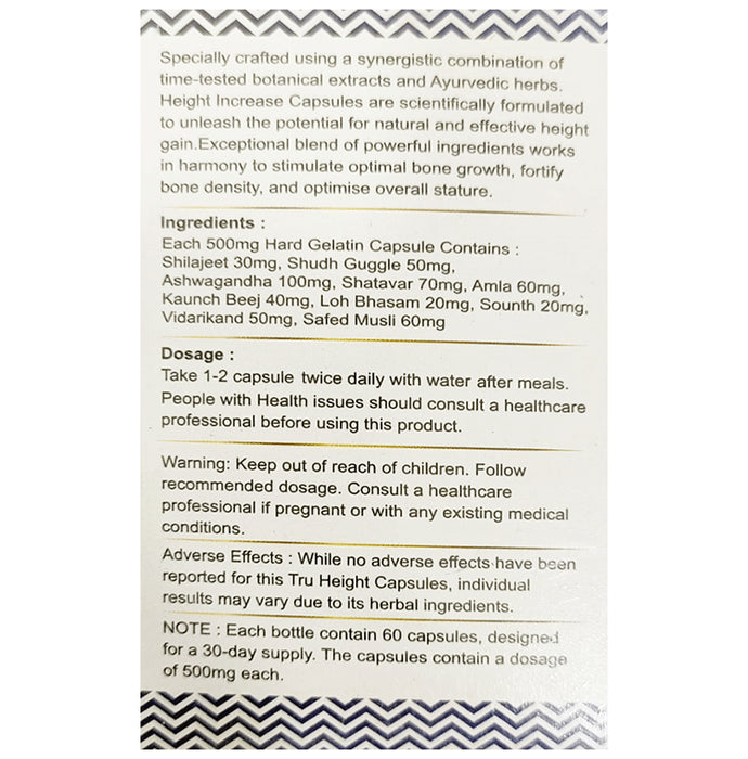 7Days Tru Height Capsule is a potent formula that helps to strengthen bones and muscles and supports their development and growth. It is a non-invasive approach to growth. The capsules help to unleash the potential for natural and effective height gain. It helps to provide essential nutrients and balances body mass. It helps to improve posture and nourishes connective tissues.