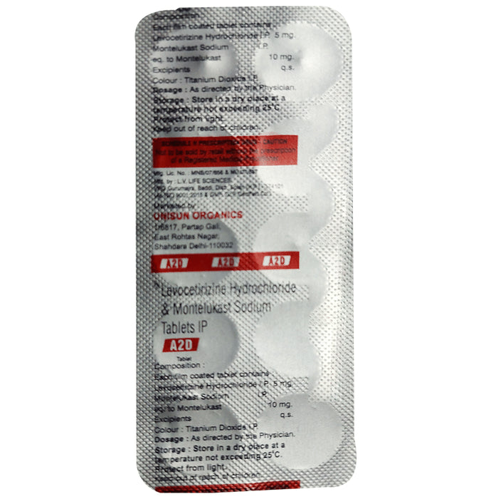 A2D Tablet is a combination medicine used in the treatment of allergic symptoms such as runny nose, stuffy nose, sneezing, itching, swelling, watery eyes and congestion or stuffiness. It also reduces inflammation in the airways and make breathing easier. A2D Tablet is taken with or without food in a dose and duration as advised by the doctor. The dose you are given will depend on your condition and how you respond to the medicine. You should keep taking this medicine for as long as your doctor recommends. If you stop treatment too early your symptoms may come back and your condition may worsen. Let your healthcare team know about all other medications you are taking as some may affect, or be affected by this medicine.The most common side effects are nausea, diarrhea, vomiting, dryness in the mouth, headache, skin rash, flu-like symptoms, and fatigue. Most of these are temporary and usually resolve with time. Contact your doctor straight away if you are at all concerned about any of these side effects. This medicine may cause dizziness and sleepiness, so do not drive or do anything that requires mental focus until you know how this medicine affects you. Avoid drinking alcohol while taking this medicine as it can worsen your sleepiness.Never support self-medication or recommend your medicine to another person. It is beneficial to have plenty of fluids while taking this medication. Before you start taking this medicine it is important to inform your doctor if you are suffering from kidney disease.