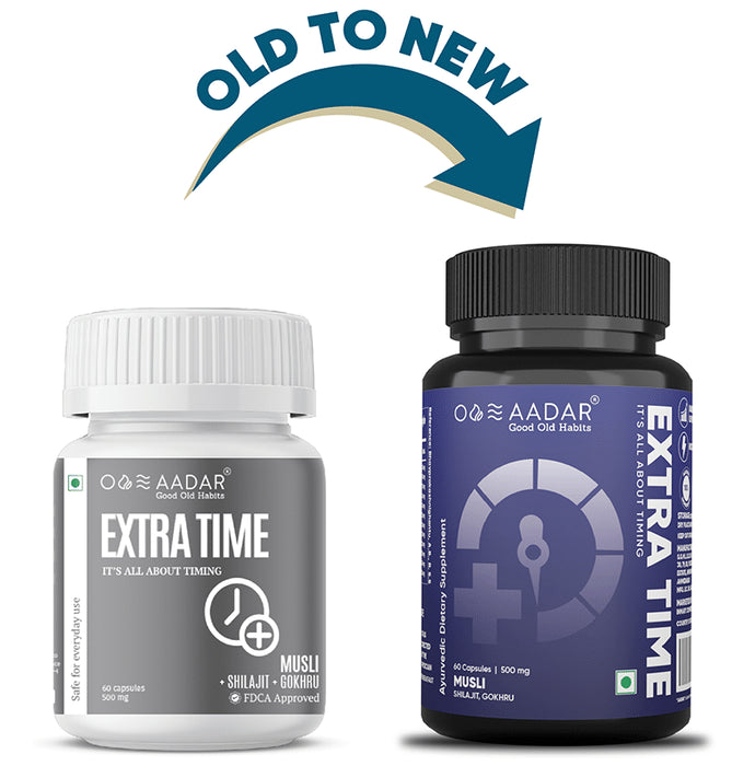 Aadar Extra Timing Capsule is a combination of Shilajit and Gokhru. It is a novel, synergistic and efficient combination of pure herbs derived from ancient scriptures and backed by science to help men improve duration, vigour, performance and stamina.
