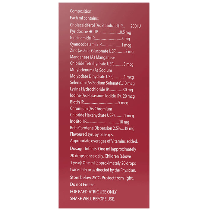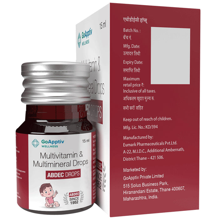 ABDEC Drops are a specialized combination of essential vitamins and minerals designed for infants and children. It is formulated to address deficiencies resulting from poor diet. This blend plays a crucial role in supporting overall health and managing dental cavities. Vitamins A, B, D, and zinc work in tandem to provide vital building blocks for the body, ensuring the well-being of growing children.
