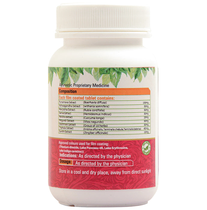 Composition : Ashwagandha extract,Punarnava extract,Manjistha extract,Sariva extract,Haridra extract,Nirgundi extract,Dashamool extract,Triphala extract,Sunthi extract