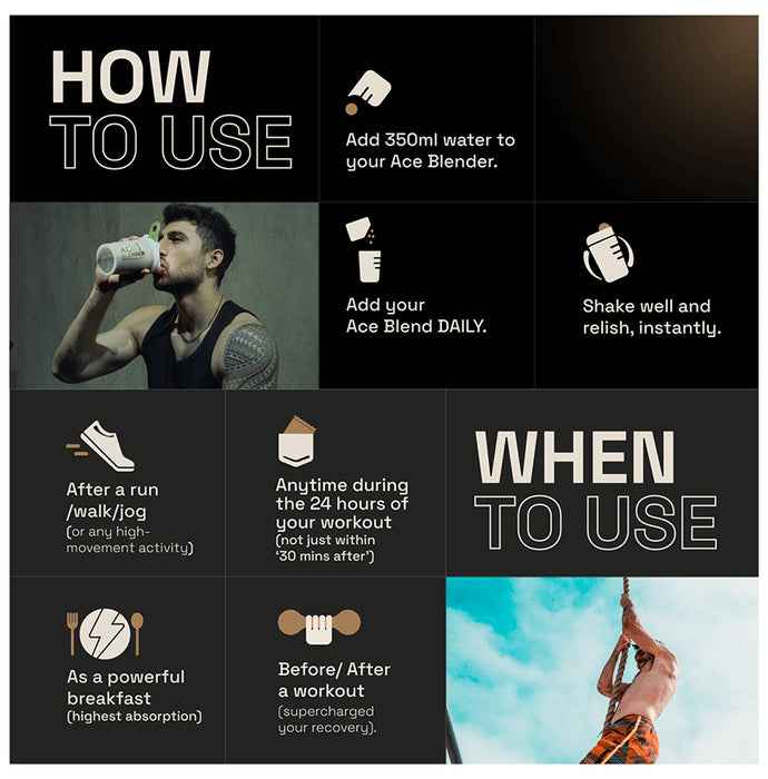 Ace Blend Intense Plant Protein Powder Sachet Sachet Chocolate Hazelnut provides the body with 100 A-grade 30 gm plant-based protein blended with pineapple-based digestive enzymes, soluble and insoluble fibre, and 2.5B CFU of multi-strain pre and probiotics.