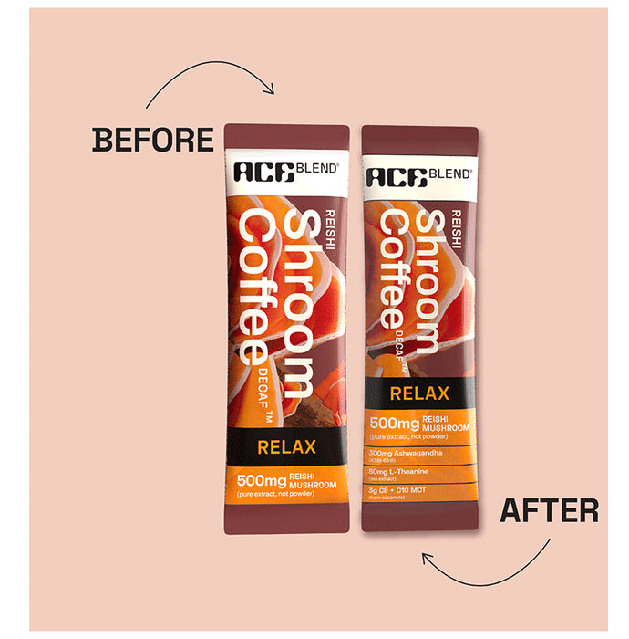 Ace Blend Reishi Shroom Coffee Sachet This decaf concoction powered with 500mg of pure reishi mushroom extract enables you to shift into a restful state of mind. Crafted with 100% Arabica coffee, it allows you to take a coffee break by day or night without the jitters and the ensuing caffeine crash from regular coffee.