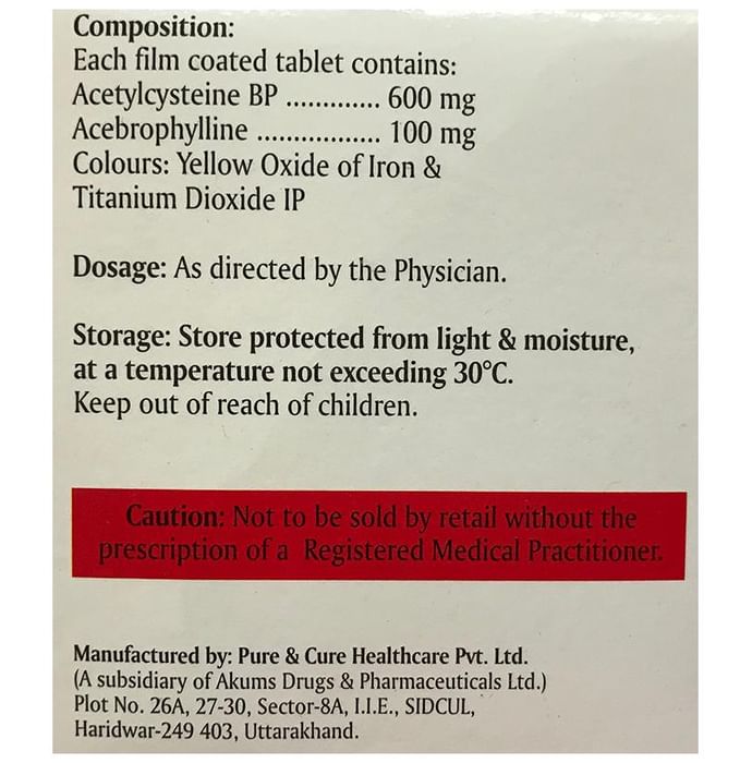 Composition : Acebrophylline (100mg) + Acetylcysteine (600mg)
