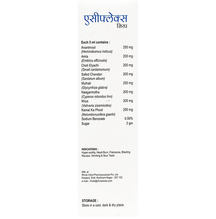 Aciflex SyrupIt is used to treat acidity and indigestion. It provides quick and lasting relief from pain and discomfort caused due to heartburn and gas troubles such as bloating and belching. It also helps to improve the symptoms of acidity such as abdominal pain and stomach discomfort.
