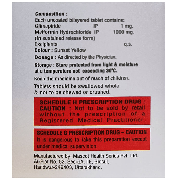 Composition : Glimepiride (1mg) + Metformin (1000mg)