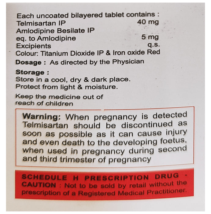 Composition : Telmisartan (40mg) + Amlodipine (5mg)