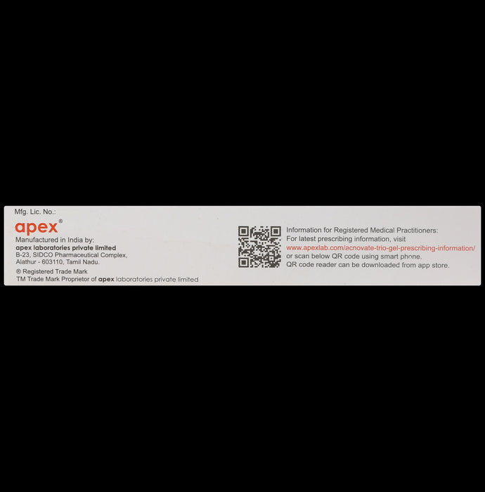 Acnovate-Trio Gel is a combination of two medicines: Adapalene and Benzoyl Peroxide, which treats acne (pimples). Adapalene is a form of vitamin A and Benzoyl Peroxide is a keratolytic medicine. Together, they prevent accumulation of the sebum (skin’s natural oil), unblock the pores and allow natural exfoliation of the outer layers of skin. Benzoyl Peroxide additionally penetrates into the skin and kills acne-causing bacteria.