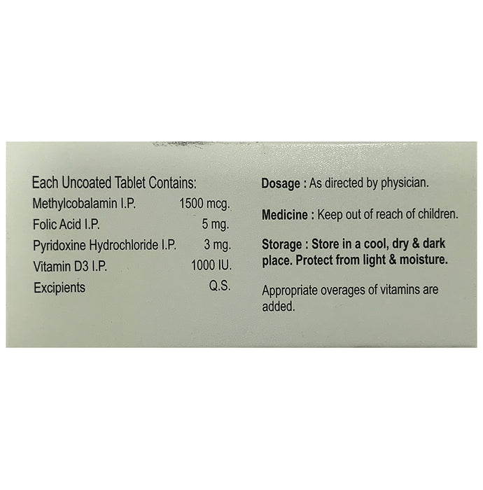 Composition : Folic acid,Vitamin D3,Methylcobalamin,Pyridoxine hydrochloride