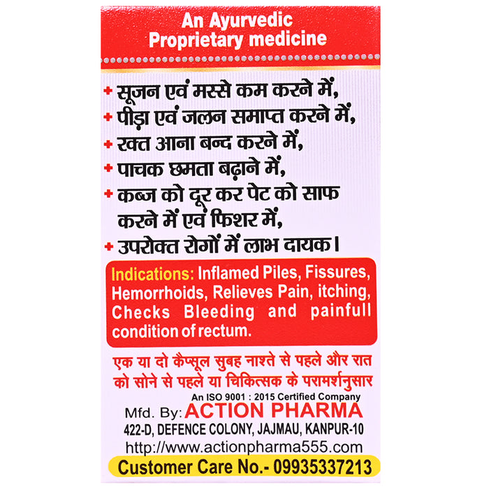 Action Pharma Action PIles Off Capsule provides herbal management for piles, swelling, and moles. In cases of Fisher’s disease, it may also help reduce bleeding, help digestion, and eliminate constipation while reducing pain and irritation. Both men and women can develop haemorrhoids. By the age of 50, around half of all adults develop haemorrhoids, and many women also experience them during pregnancy and childbirth.