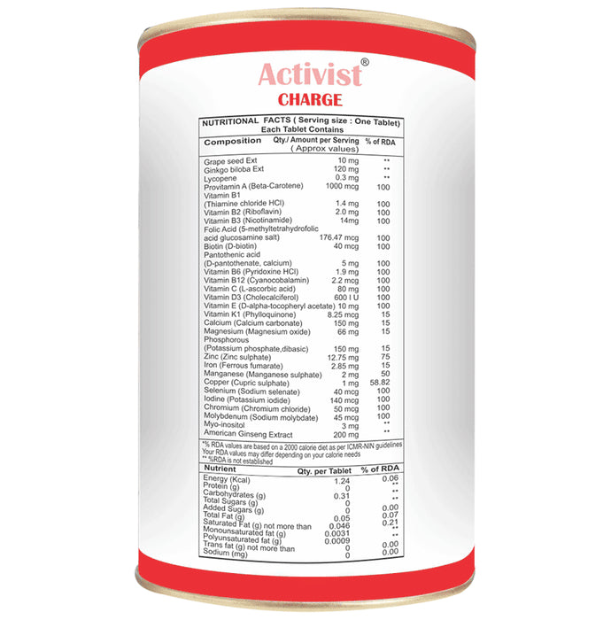 Activist Charge Tablet is a blend of vitamins and minerals that helps maintain your body's blood level. It provides proper nutrition and the preservation of good health by contributing to healthy immune function.