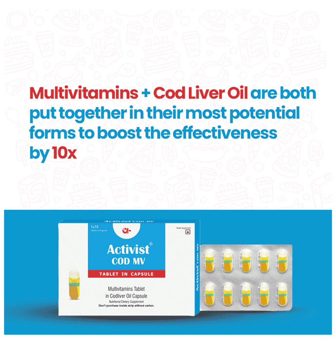 Activist Cod Mv Tablet in Capsule (10 Each) is a formulation that helps to improve cardiac health and boosts immunity. The tablets support bone health.