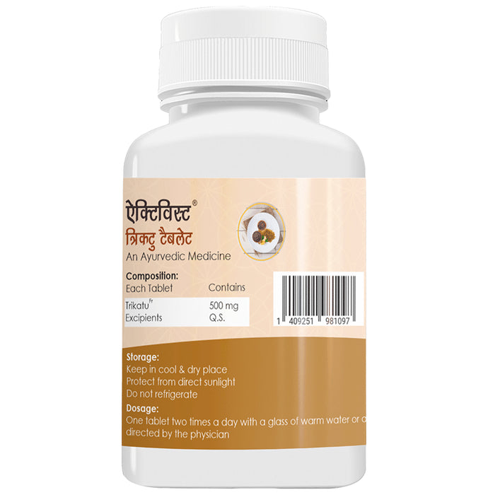 Activist Trikatu Tablet Trikatu is a classic Ayurvedic herbal blend of pippali, ginger, and black pepper. It plays an essential role in resolving respiratory and digestive issues. Stimulates the stomach to produce digestive enzymes to promote the digestion of food and increase appetite.