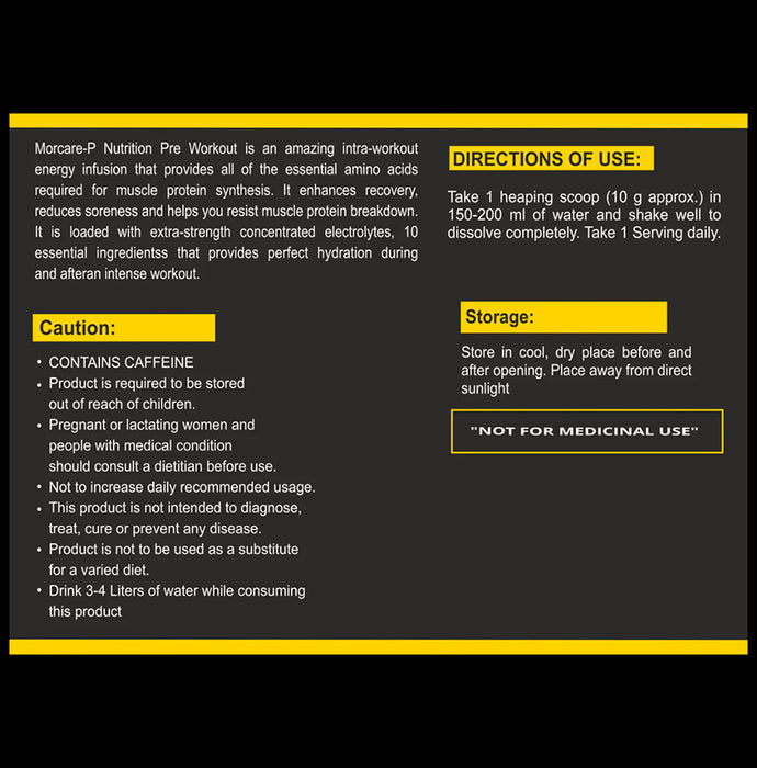 Acuraglobe Morcare-P Pre Workout Powder Blueberry is a unique intra-workout energy infusion that helps provide essential amino acids required for muscle protein synthesis. It helps enhance recovery, reduce soreness, and enables you to resist muscle protein breakdown. It is loaded with strength concentrates, electrolytes, and ten essential ingredients that help provide hydration during and after an intense workout