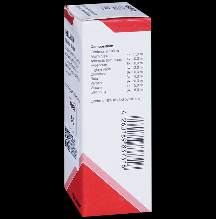ADEL 50 Helmin Worms Drop are useful for the supportive treatment to address symptoms of all types of worms in the intestines in children and adults. It is indicated for symptoms associated with parasitic infections including disturbed gut symbiosis, abdominal pain, unexplained hunger pangs, rash, and itchiness in the anus/rectum.