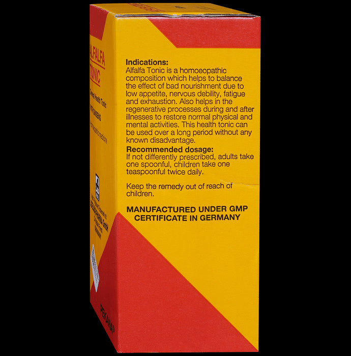 ADEL Alfalfa Tonic with GinsengIt is a homoeopathic medicine which is produced from a foraging crop and is enriched with essential vitamins and nutrients. Alfalfa helps in enhancing our immunity and detoxifying the body. Ginseng is used as an active ingredient which protects from oxidative stress and helps in improving the immune system.