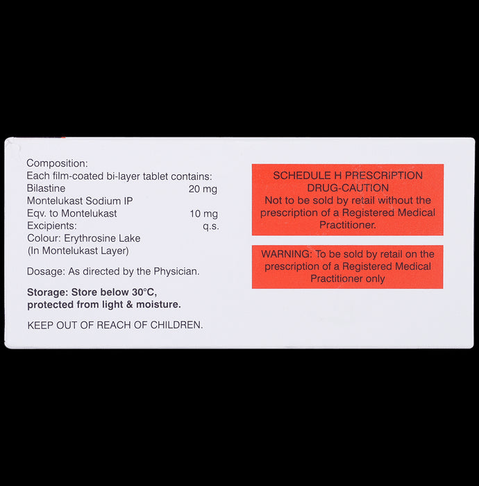 Composition : Bilastine (20mg) + Montelukast (10mg)