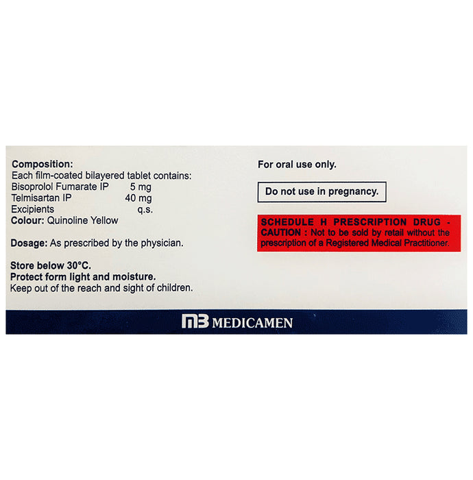 Composition : Bisoprolol (5mg) + Telmisartan (40mg)