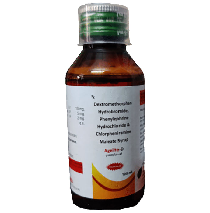 Agelite-D Syrup Sugar Free is a medicine used in the treatment of common cold and cough. It can provide quick relief from cough and common cold symptoms like runny nose, stuffy nose, sneezing, watery eyes, and congestion or stuffiness. Agelite-D Syrup Sugar Free is taken with or without food in a dose and duration as advised by the doctor. The dose you are given will depend on your condition and how you respond to the medicine. You should keep taking this medicine for as long as your doctor recommends. If you stop treatment too early your symptoms may come back and your condition may worsen. Let your healthcare team know about all other medications you are taking as some may affect, or be affected by this medicine.Common side effects of this medicine include headache, sedation, double vision, vomiting, diarrhea, dry mouth, and nausea. Most of these are temporary and usually resolve with time. Contact your doctor straight away if you are at all concerned about any of these side effects. This medicine can also cause sleepiness, so do not drive or do anything that requires mental focus until you know how this medicine affects you. Avoid drinking alcohol while taking this medicine as it can worsen your sleepiness.Never support self-medication or recommend your medicine to another person. It is beneficial to have plenty of fluids while taking this medication. Before taking this medicine, you should tell your doctor if you are pregnant, planning pregnancy or breastfeeding. You should also tell your doctor if you have any kidney or liver diseases so that your doctor can prescribe a suitable dose for you.