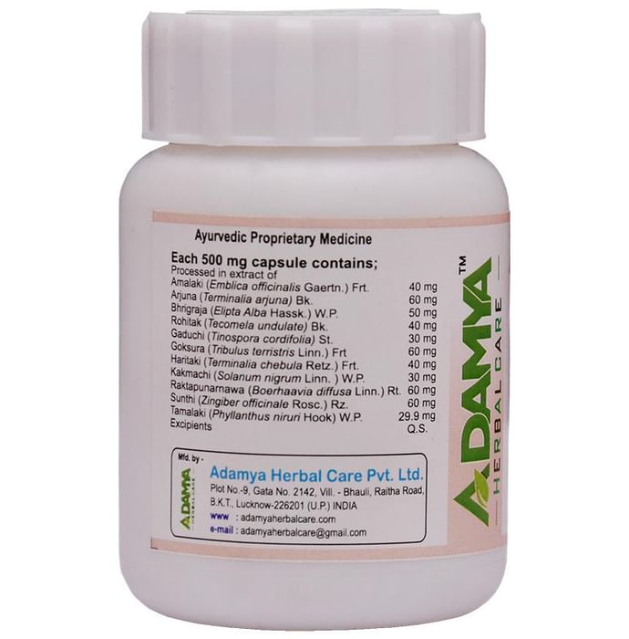 Composition : Amalaki (Emblica officinalis Gaertn.),Arjuna (Terminalia arjuna),Bhrigraja (Elipta Alba Hassk.),Rohitak (Tecomela undulate),Gaduchi (Tinospora cordifolia),Goksura (Tribulus terristris Linn.),Haritaki (Terminalia chebula Retz.),Kakmachi (Solanum nigrum Linn.),Raktapunarnawa (Boerhaavia diffusa Linn.),Sunthi (Zingiber officinale Rosc.),Tamalaki (Phyllanthus niruri Hook)