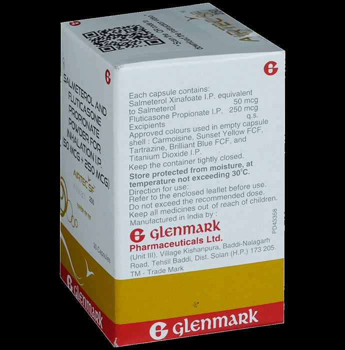 Airtec SF 250 Instacap is a combination of two medicines that opens the airways and makes it easier to breathe. It is used in the treatment of asthma (wheezing and shortness of breath) and chronic obstructive pulmonary disorder (a lung disorder in which the flow of air to the lungs is blocked). Your doctor will tell you how often you need to use your inhaler. The effect of this medicine may be noticeable after a few days but will only reach its maximum after a few weeks. This medicine must be used regularly to be effective, so go on taking it even if you don't have any symptoms. That means it’s doing its job. If you stop taking it your asthma and chronic obstructive pulmonary disorder (COPD) may get worse. It should not be used to relieve sudden asthma attacks. If an asthma attack occurs, use your quick-relief inhaler (reliever). To get the benefit from this medicine you need to make sure you get your inhaler technique right, otherwise, it does not work as well.The most common side effects are nausea, vomiting, respiratory tract infection, fungal infections in the mouth, headache, hoarseness of voice, sore throat, cough, musculoskeletal (bone, muscle, or joint) pain, and increased heart rate. If you get there, do not stop taking it but do talk to your doctor. You can help prevent some of these symptoms by rinsing your mouth and throat with water or brushing your teeth after using your inhaler. There are other, rarer side effects that can be serious. Talk to your doctor if you're worried about them. In general, you should be trying to avoid situations that make your asthma worse (your triggers) and try not to smoke.Ask your doctor whether it’s safe to take this medicine if you're pregnant or breastfeeding. Before taking it, you should tell your doctor if you have any kidney or liver diseases so that your doctor can prescribe a suitable dose for you.