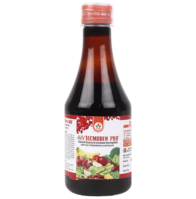 Aiv's Hemobin Pro is enriched with pomegranate, beetroot, amla, guava and 10 other herbs, which help boost the body's haemoglobin. It helps in preventing fatigue, tiredness and shortness of breath. It provides overall strength and provides relief from headaches as well. It also takes care of minor symptoms relating to asthma and bronchitis. It is also used to reduce the symptoms of arthritis and rheumatoid arthritis. It rejuvenates your overall health.