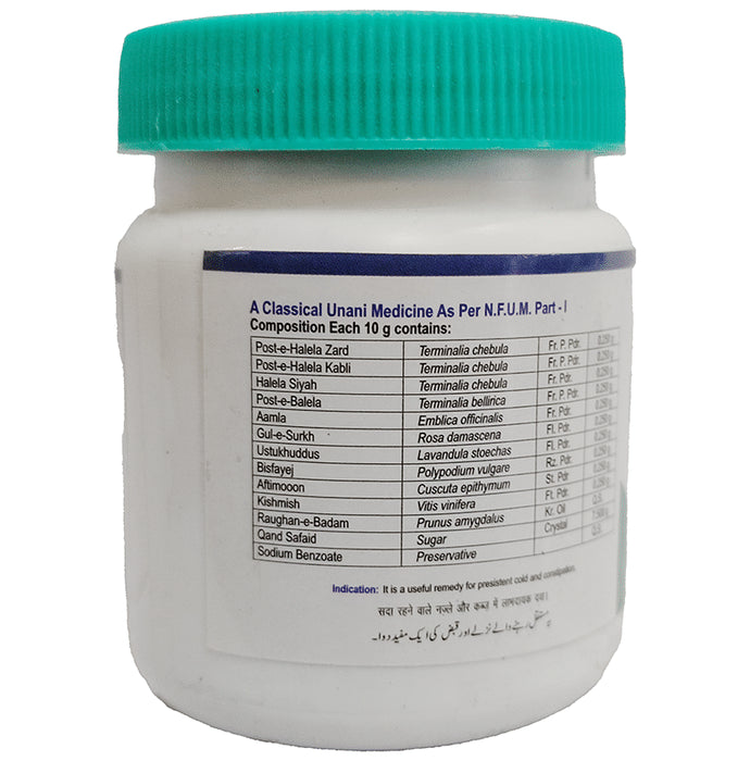 Composition : Amla,Post-e-Halela Zard,Post-e-Halela Kabli,Halela Siyah,Post-e-Balela,Gul-e-Surkh,Ustukhuddus,Bisfayej,Aftimooon,Kishmish,Raughan-e-Badam,Qand Safaid,Sodium Benzoate