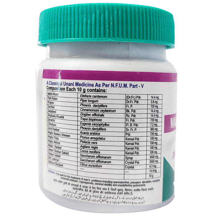 Composition : Cinnamon, Ilaichi Khurd 14.4 Mg, Pipal Kalan2.88 Mg, Khajoor 720 Mg, Darchini 14.4 Mg, Zanjabeel 14.4 Mg, Singhada Khushk 720 Mg, Qaranfal 7.2 Mg, Chhuhara 360 Mg, Gond Keekar 720 Mg, Magz Badam Shireen 108 Mg, Maghz Pista 108 Mg, Maghz Akhrot 108 Mg, Maghz Narjeel 108 Mg, Qiwam Shakar Safaid 3.6 G, Shakar Safaid 3.6 G, Sat Leemun 4.32 Mg, Natroon Banjawai 14.4 Mg