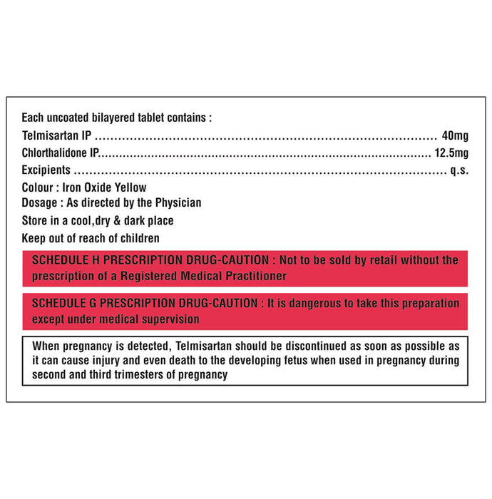 Composition : Telmisartan (40mg) + Chlorthalidone (12.5mg)