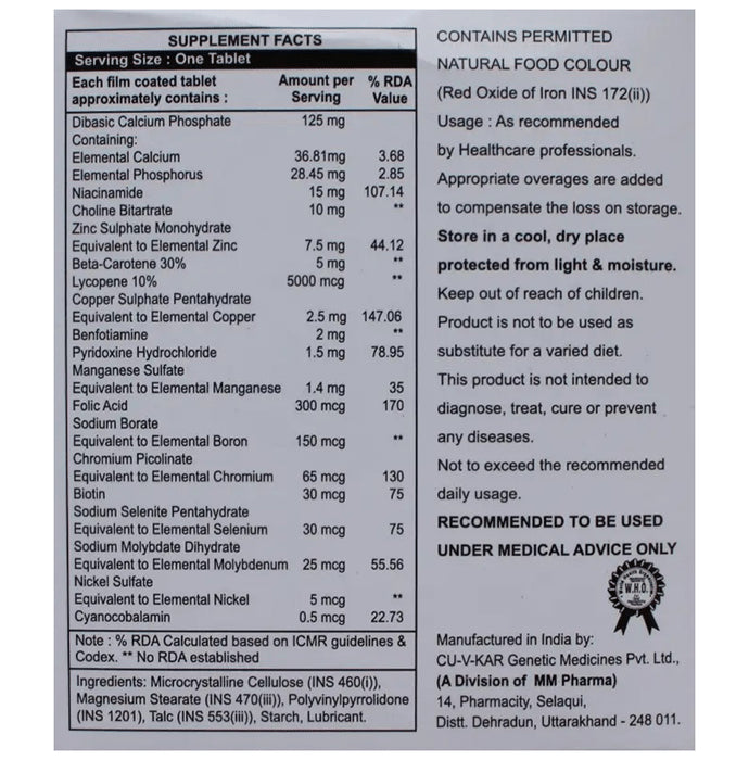 Composition : Choline Bitartrate, Beta-Carotene, Lycopene, Benfotiamine, Multivitamins, Multiminerals
