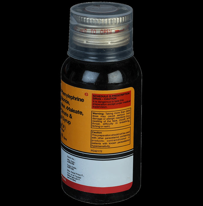Composition : Chlorpheniramine Maleate (0.5mg/5ml) + Paracetamol (125mg/5ml) + Phenylephrine (5mg/5ml) + Sodium Citrate (60mg/5ml) + Menthol (1mg/5ml)