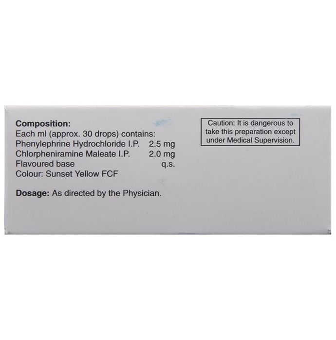 Composition : Chlorpheniramine Maleate (2mg/ml) + Phenylephrine (2.5mg/ml)