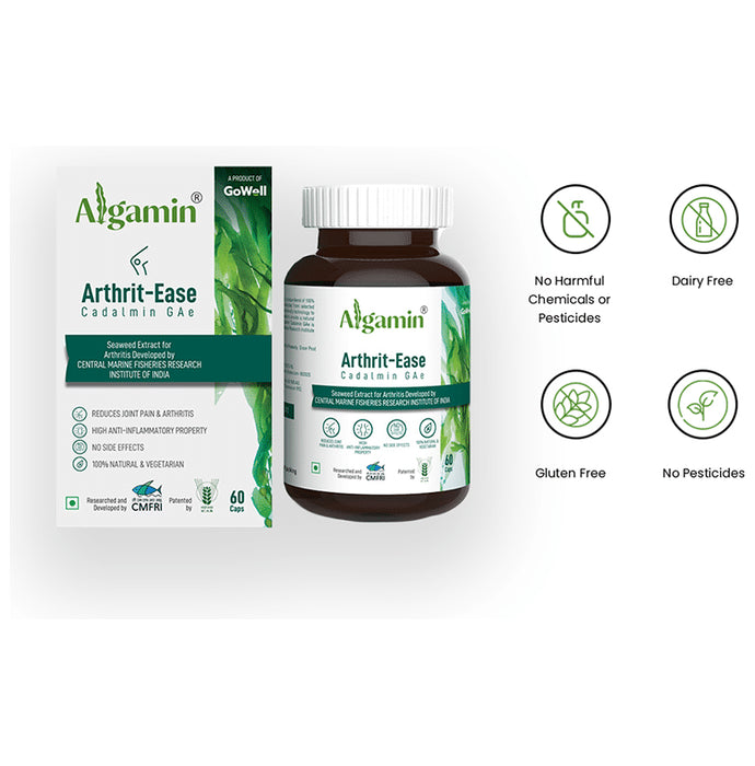 Algamin Arthrit-Ease Capsis a nutritional supplement that helps maintain calcium levels in the blood. It serves as a 100% natural remedy for arthritis and osteoporosis. These capsules contain a unique blend of anti-inflammatory ingredients that help combat inflammatory pain in the joints.