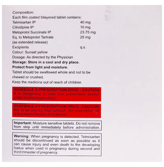 Composition : Cilnidipine (10mg) + Metoprolol Succinate (25mg) + Telmisartan (40mg)