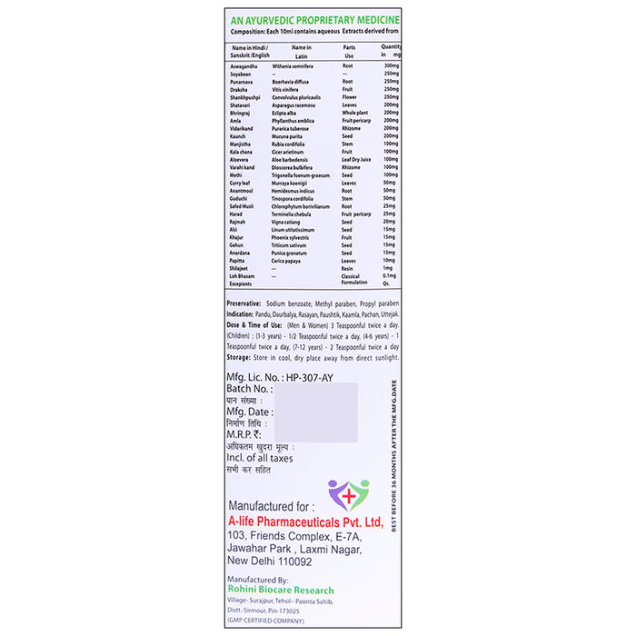 Composition : Ashwagandha,Soybean,Punarnava,Draksha,Shankhpushpi,Shatavari