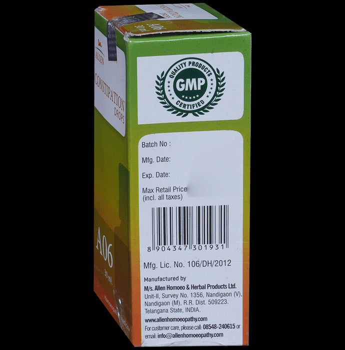 Allen A06 Constipation Drop is indicated for treating bloating, flatulence, gastritis, indigestion, insufficient and irregular elimination. It also acts as a mild laxative to relieve gas.