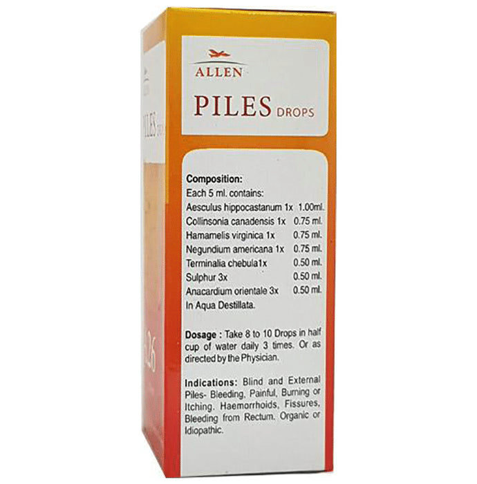 Allen A26 Piles Drop helps manage concerns associated with blind and external piles-bleeding, pain, burning or itching. haemorrhoids, fissures, and bleeding from the rectum. A26 Piles Drop aims to alleviate the diverse symptoms associated with this condition, providing targeted relief and promoting overall rectal health.