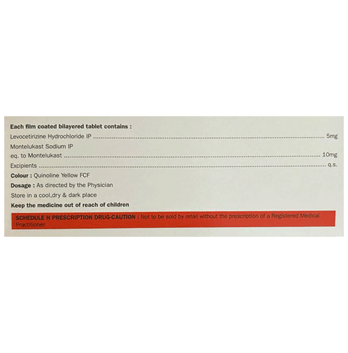 Composition : Levocetirizine (5mg) + Montelukast (10mg)