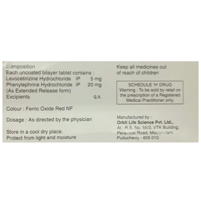 Composition : Levocetirizine (5mg) + Phenylephrine (20mg)