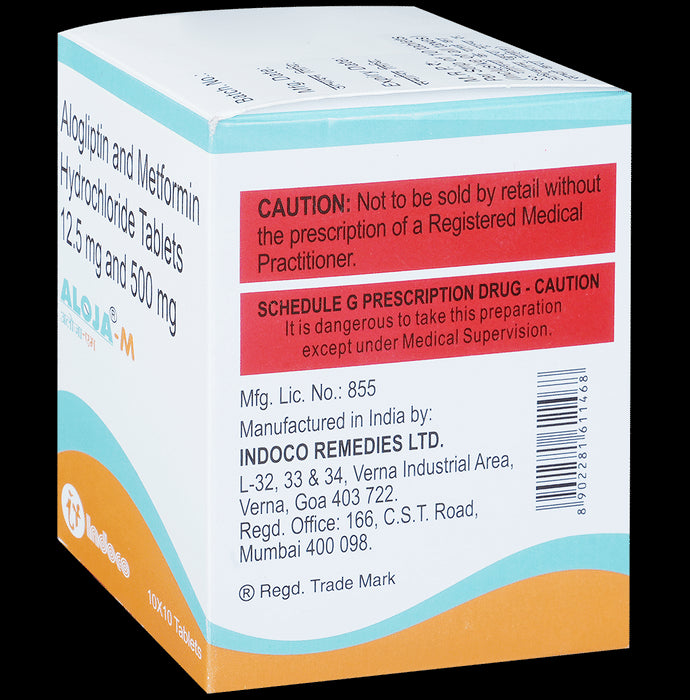 Aloja-M Tablet is a combination of two medicines that control high blood sugar levels in people with type 2 diabetes mellitus. This action helps prevent serious complications of diabetes, such as kidney damage and blindness, and may also reduce one’s chances of having a heart attack or stroke.Aloja-M Tablet can be prescribed alone or together with other diabetes medications. All diabetes medicines work best with a healthy diet and regular exercise. Your dose will depend on your condition, blood sugar levels, and other medicines you are taking. Taking it with meals helps reduce the chances of developing an upset stomach.Aloja-M Tablet should be taken regularly at the same time each day to get the most benefits, and you should not be stopped unless your doctor recommends it. It controls your blood sugar levels and helps prevent serious complications in the future. It is important to stay on the diet and exercise program recommended by the doctor while taking this medicine, as your lifestyle plays a big part in controlling diabetes.This medicine's most common side effects include upper respiratory tract infection, nasopharyngitis, diarrhea, hypertension, headache, back pain, and urinary tract infection. Low blood sugar level (hypoglycemia) is a possible side effect if you are also taking other diabetes medicines, like insulin or sulfonylurea. One should be educated about how to recognize and deal with it.This medicine is not suitable for everyone. Before taking it, you should let your doctor know if you have ever had kidney, liver, or heart disease, problems with your pancreas, or if you drink a lot of alcohol. Pregnant or breastfeeding women should also consult their doctor before taking this medicine. Some other medicines can affect this drug’s action; therefore, tell the doctor about all the medications you are taking to ensure you are safe. Try to avoid drinking alcohol as it lowers blood glucose. Your doctor will check your kidney function and blood sugar levels before and during the treatment.