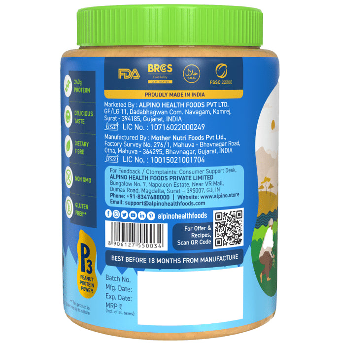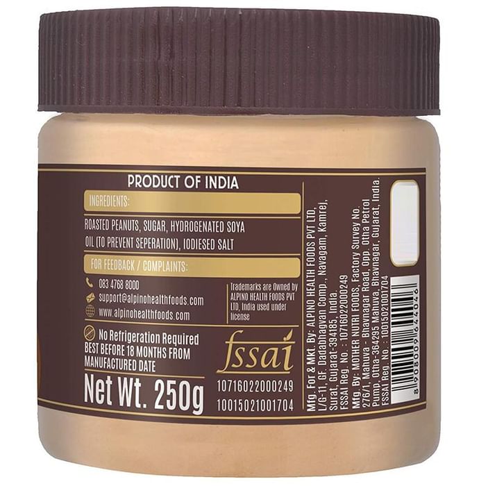 Alpino Peanut Butter is a healthy bread spread made of roasted almonds that promises to give you a wonderful taste each time, all the time. High on nutrition, it is healthy for everyone in the family as it has zero cholesterol and zero trans fats. It is available in seven flavours, namely Chocolate, Classic crunch, Classic smooth,Natural cruch honey, Natural crunch unsweetened, Natural smooth honey, and Natural smooth unsweetened.