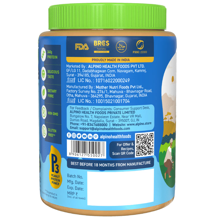 Alpino Peanut Butter is a healthy bread spread made of roasted almonds that promises to give you a wonderful taste each time, all the time. High on nutrition, it is healthy for everyone in the family as it has zero cholesterol and zero trans fats. It is available in seven flavours, namely Chocolate, Classic crunch, Classic smooth,Natural cruch honey, Natural crunch unsweetened, Natural smooth honey, and Natural smooth unsweetened.