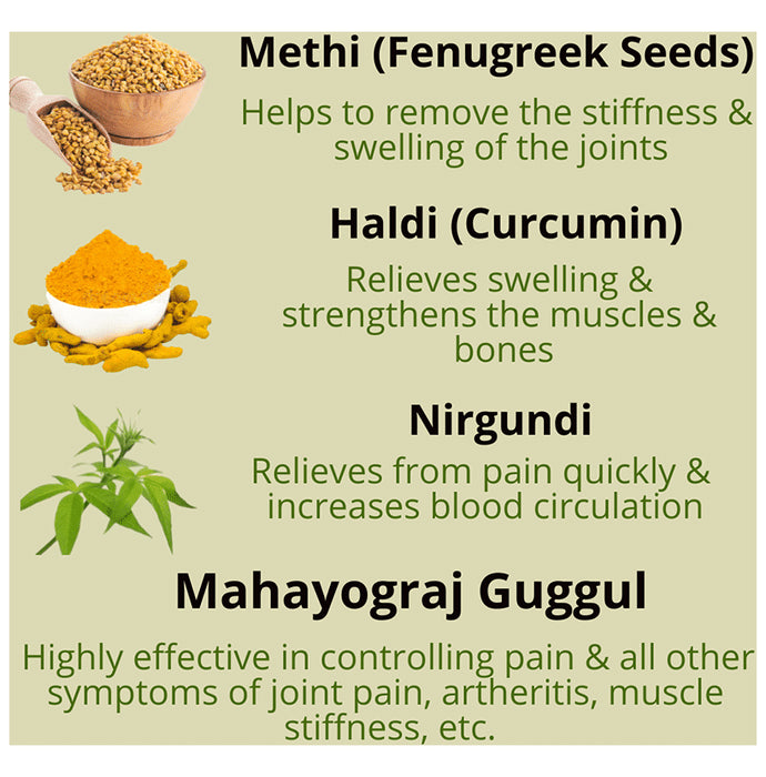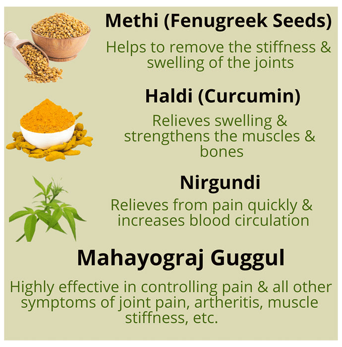Composition : Haldi,Methi,Nirgundi,Mahayograj,Mahayograj guggal