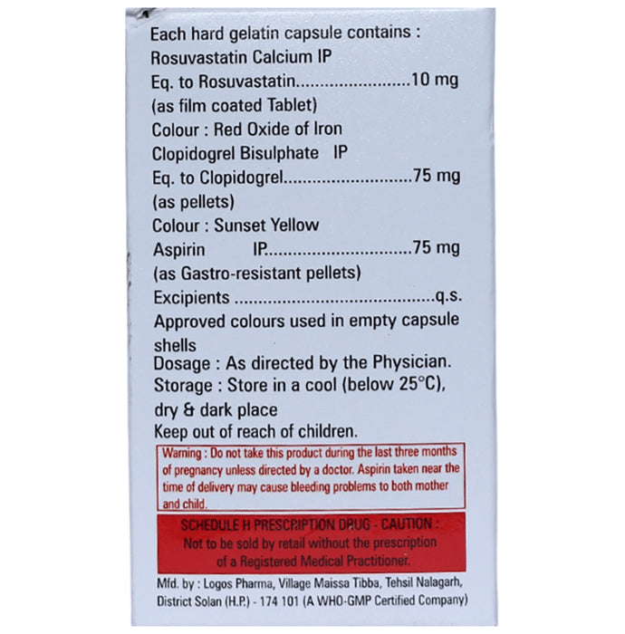Composition : Aspirin (75mg) + Rosuvastatin (10mg) + Clopidogrel (75mg)